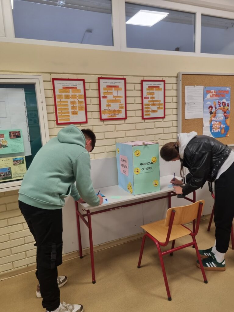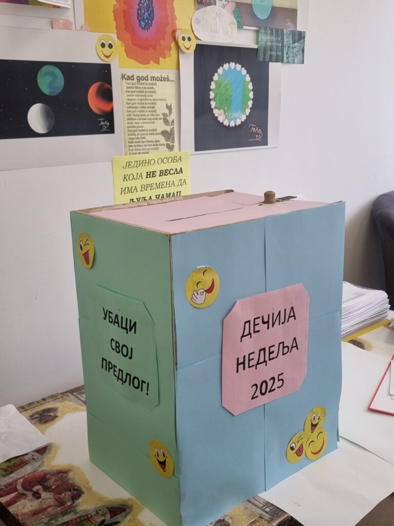 Дечија недеља, која је почела данас, прилика је да се подсетимо колико је важно чути глас сваког детета. У оквиру овогодишњих активности поставили смо „Кутију предлога“, у коју ученици могу убацити своје идеје, жеље и предлоге о томе шта би волели да се промени или уведе у нашој школи.
