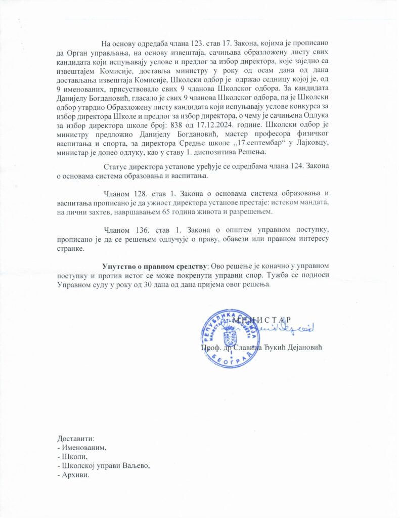 Са овим именовањем, школа добија руководиоца који ће водити тим ка новим изазовима и циљевима, са намером да обезбеди квалитетно образовање и подстакне развој свих ученика, као и наставника.