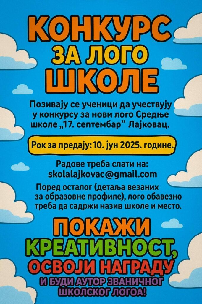 Позивају се ученици да учествују у конкурсу за нови лого Средње школе „17. септембар” Лајковац.
