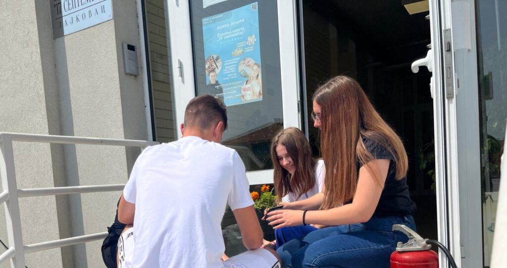 Ученици првог разреда су такође посадили и цвеће у присуству педагога школе.