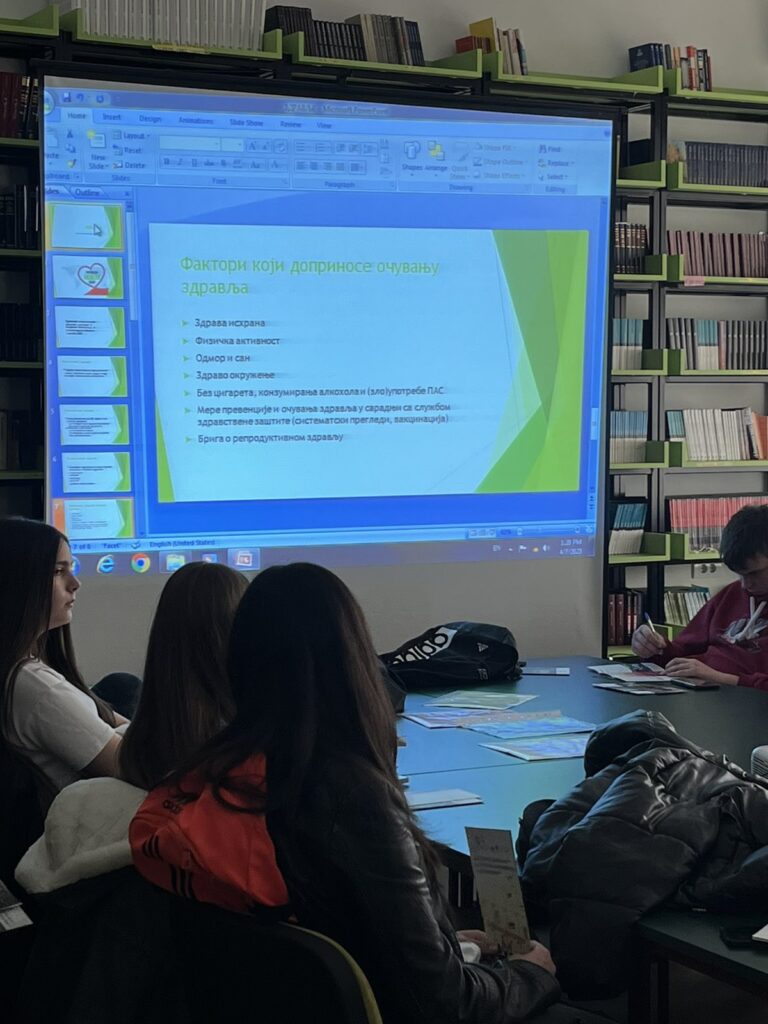 Предавач у нашој школи била је др Дијана Живковић (педијатар Дома здравља Лајковац) а предавању су присуствовали ученици наше школе, као и поједини наставници и педагог. Било је речи о менталном здрављу, социјалним аспектима здравља, а такође и о факторима који доприносе очувању здравља. Др Дијана Живковић истакла је важност здраве исхране и редовне физичке активности у циљу смањења ризика од евентуалних здравствених проблема.
